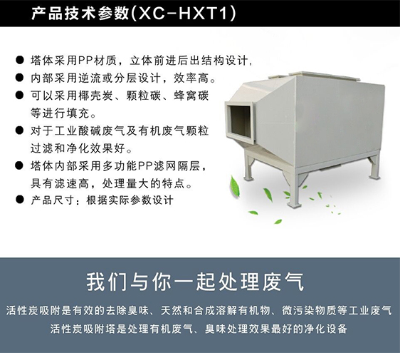 活性炭吸附塔是處理有機廢氣、臭味處理效果非常好的凈化設備。活性炭吸附是有效的去除水的臭味、天然和合成溶解有機物、微污染物質(zhì)等的措施。該設備是凈化較高濃度有機廢氣和噴漆廢氣的吸附設備,是利用活性炭本身高強度的吸附力,結(jié)合風機作用將有機廢氣分子吸附住,對有機溶劑的廢氣有很好的吸附作用。在實際安裝和應用情況,總結(jié)國內(nèi)外同類產(chǎn)品的生產(chǎn)經(jīng)驗,改進設計制造,推出下料形式方便,表面平整度更出色,結(jié)構(gòu)強度更高,吸附能力更強的活性炭吸附塔。我公司生產(chǎn)的活性炭吸附裝置應用活性炭吸附原理,和吸附同類產(chǎn)品特點改進設計。本裝置處理風量較大、采用氣動閥門,操作管理簡單安穩(wěn)。